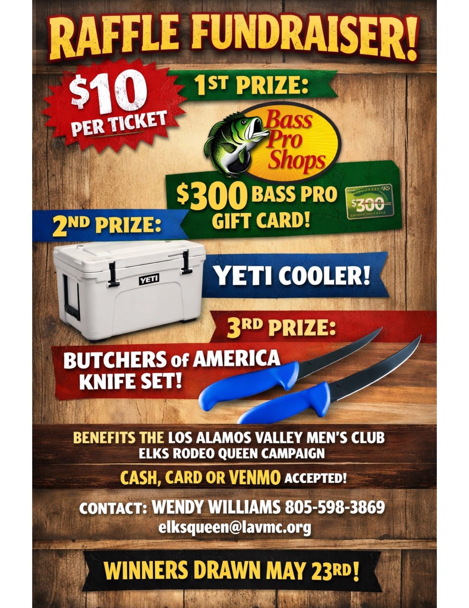 This year’s event is scheduled for April 18th. Doors open at 5:30. Each $100 ticket includes, BBQ Steak Dinner for Two, and entry into the reverse drawing. Silent Auction, Live Auction and More. Everyone’s Welcome…